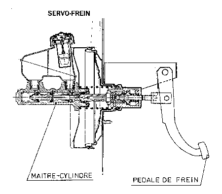 Derrière la pédale, un maître cylindre distribue aux cylindres récepteurs grâce