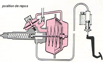soit par l'intermédiaire d'une canalisation hydraulique (Hydrovac). Tous les véhicules actuels utilisent des Mastervac.