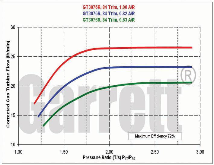 le choix de votre turbo. Flow map de turbine, on remarque clairement que plus l'AR est faible, plus le