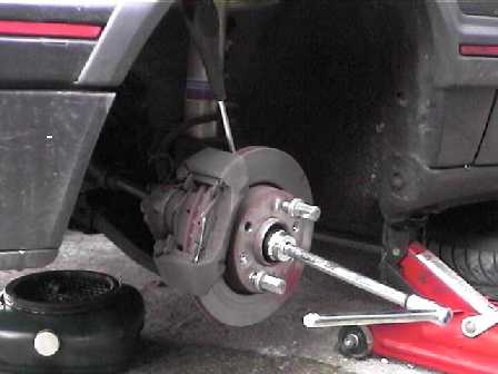 - soit après avoir enlevé l’enjoliveur, roue au sol , frein à main
