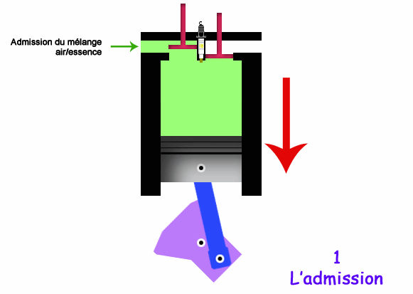 soupape d'échappement est fermée, le piston descend en aspirant le mélange gazeux.