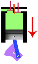 fermées, le piston descend (la bougie s'est allumée et a provoqué une