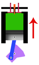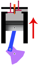 soupape d'admission est fermée, le piston remonte en rejetant les gaz brûlés.