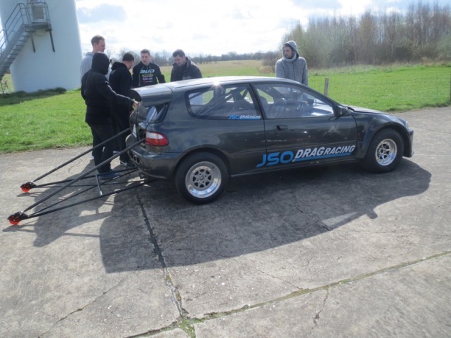 Puis on monte les vrais pneus de drag et les fameuses "wheelies-bars".
